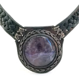 Boho Handcrafted Genuine Leather Choker with Amethyst Stone - Quality Unisex Fashion Leather Jewelery
