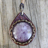 Bohemian Handcrafted Genuine Vegetal Leather Necklace with Purple Agate Stone Pendant-Unique Lifestyle Gift Unisex Fashion Leather Jewelry