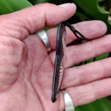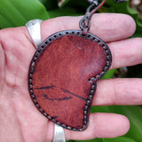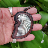 The pendant is attached to an thin adjustable leather strap and is %100 handcrafted.