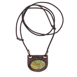 The pendant is attached to an ''adjustable'' leather strap and is %100 handcrafted.