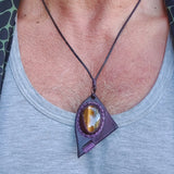 Bohemian Handcrafted Vegetal Leather Necklace with Tiger Eye Stone setting - Quality Unisex Gift Fashion Leather Jewelry.