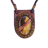 The pendant is attached to an ''adjustable'' leather strap and is %100 handcrafted.
