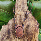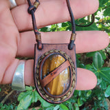 Bohemian Handcrafted Brown Vegetal Leather Necklace with Tiger Eye Stone setting - Quality Unisex Gift Fashion Leather Jewelry.