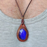 Bohemian Handcrafted Genuine Vegetal Brown Leather Necklace with Blue Cat Eye Stone-Lifestyle Unique Gift Unisex Fashion Leather Jewelry.