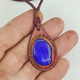 Bohemian Handcrafted Genuine Vegetal Brown Leather Necklace with Blue Cat Eye Stone-Lifestyle Unique Gift Unisex Fashion Leather Jewelry