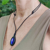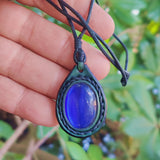 Bohemian Handcrafted Genuine Vegetal Green Leather Necklace with Blue Cat Eye Stone-Lifestyle Unique Gift Unisex Fashion Leather Jewelry.