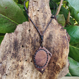 The pendant is attached to an thin ''ADJUSTABLE'' leather strap and is %100 handcrafted.