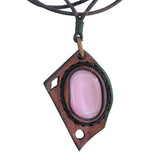 Bohemian Handcrafted Genuine Vegetal Brown Leather Necklace with Pink Cat Eye Stone-Lifestyle Unique Gift Unisex Fashion Leather Jewelry.