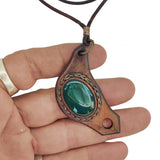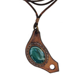 Bohemian Unique Handcrafted Vegetal Brown Leather Necklace with Green Agate Stone-Lifestyle Unique Gift Unisex Fashion Leather Jewelry