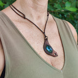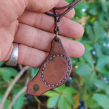 The pendant is attached to an thin ''ADJUSTABLE'' leather strap and is %100 handcrafted.