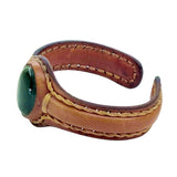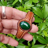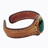 Boho Handcrafted Genuine Vegetal Brown Vegetal Brown Leather Bracelet with Green Agate Stone-Unique Gift Fashion Jewelry Cuff.
