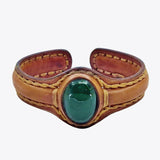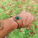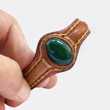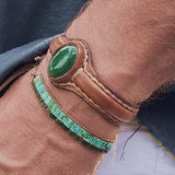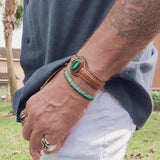 Boho Handcrafted Genuine Vegetal Brown Vegetal Brown Leather Bracelet with Green Agate Stone-Unique Gift Fashion Jewelry Cuff