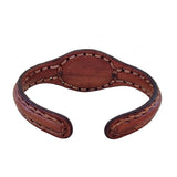 Boho Handcrafted Genuine Vegetal Brown Leather Bracelet with Black and White Agate Stone-Unique Gift Fashion Jewelry Cuff