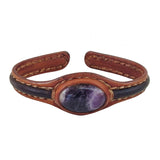 Unique Handcrafted Genuine Leather Bracelet with Purple Agate Stone Setting-Life Style Unisex Gift Fashion Jewelry Bangle Cuff Wristband