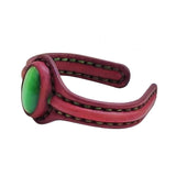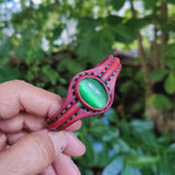Handcrafted Genuine Brown Color Vegetal Leather Bracelet with Green Cat Eye Stone Setting-Lifestyle Gift Fashion Jewelry Cuff Bangle.