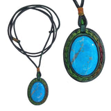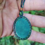 100% handmade vegetal leather necklace design with turquoise stone setting.