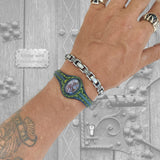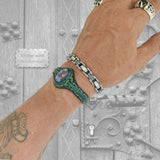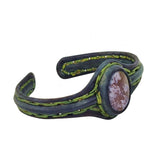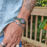 Unique Handcrafted Green Leather Bracelet with Purple Agate Stone Setting-Life Style Unisex Gift Fashion Jewelry Bangle Cuff Wristband
